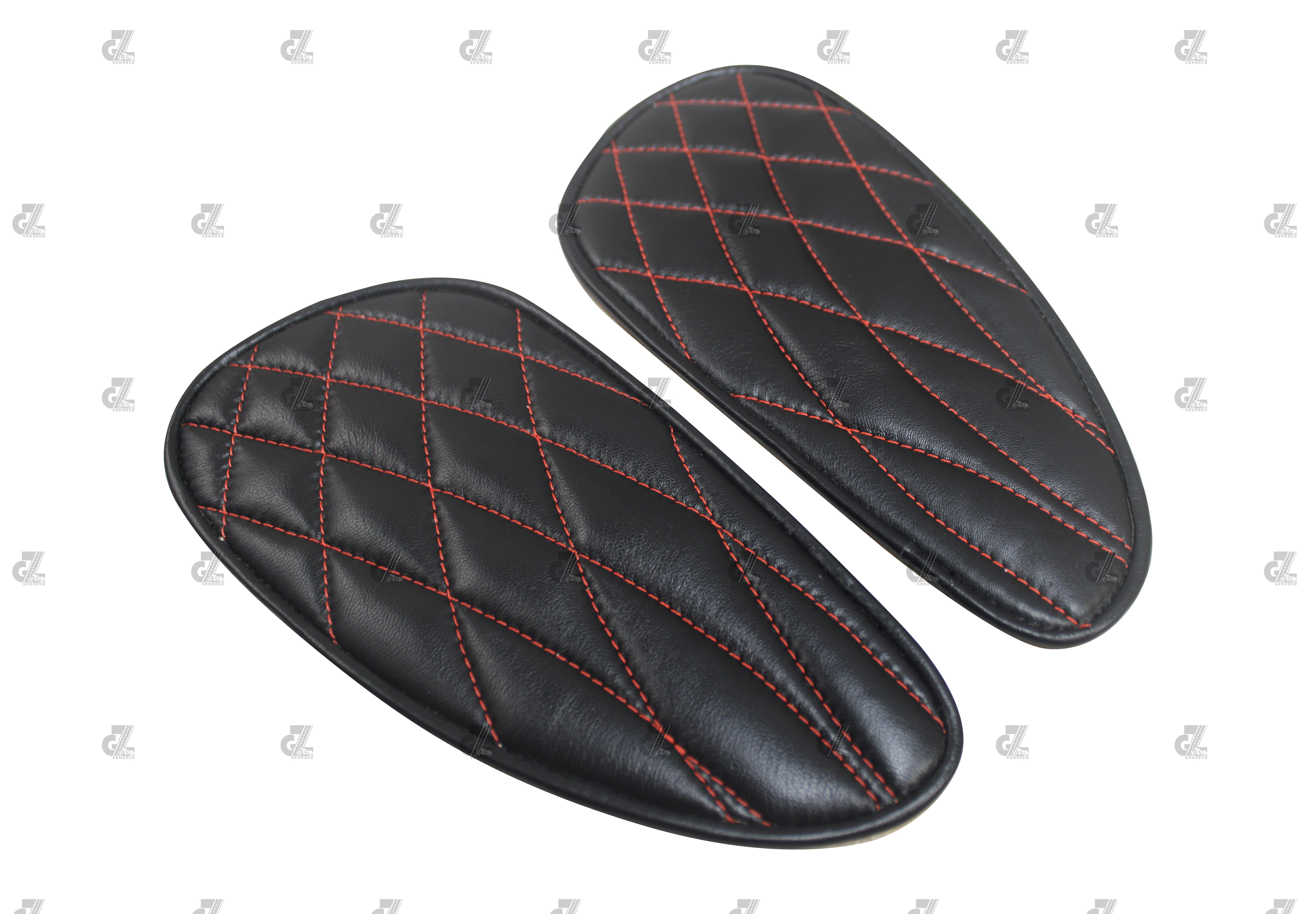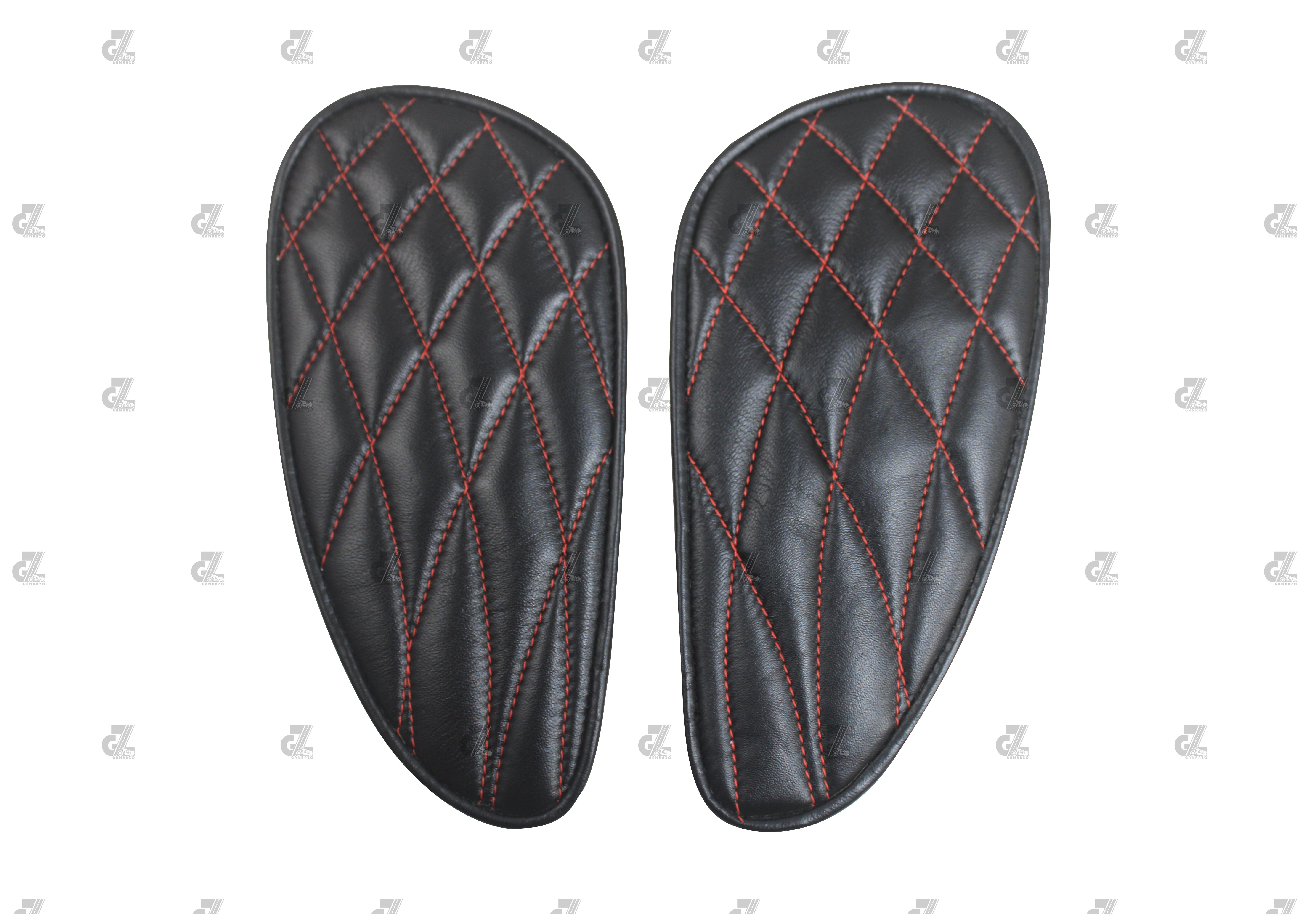 Genuine Leather Daimond Black Tank Pads with Red Thread Compatible with Royal Enfield Bear 650