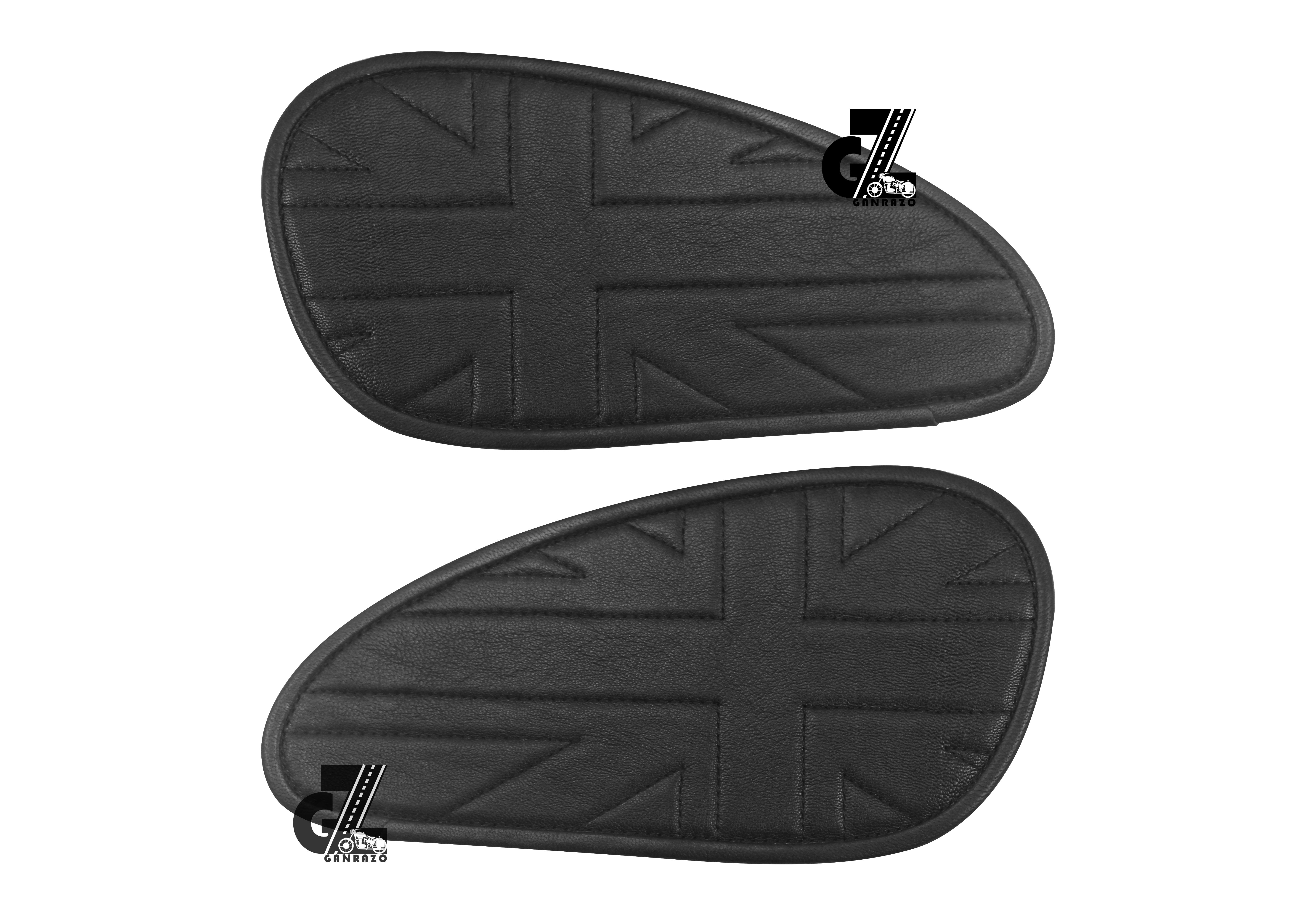 Genuine Leather Union Jack Black Tank Pad with Black Thread Compatible with Royal Enfield Bear 650