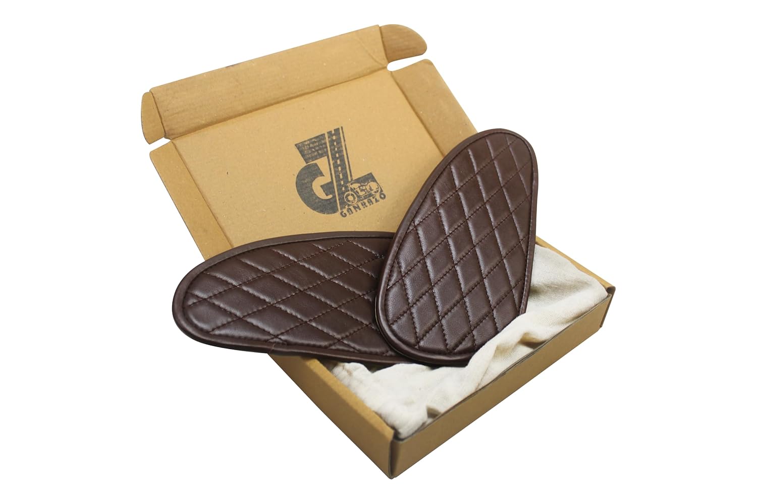 Genuine Leather Daimond Dark Brown Tank Pads with Brown Thread Compatible with Royal Enfield Bear 650