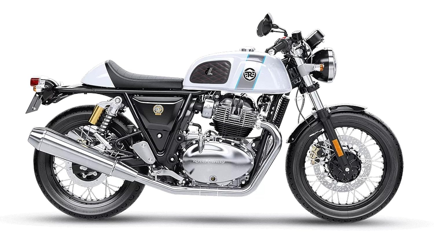Genuine Leather Daimond Black Tank Pad with Red Thread Combo Headlight X & Handgrip Straps Dark Brown Compatible with Royal Enfield Continental Gt 650