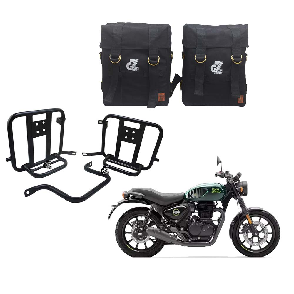 Black Canvas Pannier Bag Pair With Saddle Stay Pair Fit for Royal Enfield Hunter 350