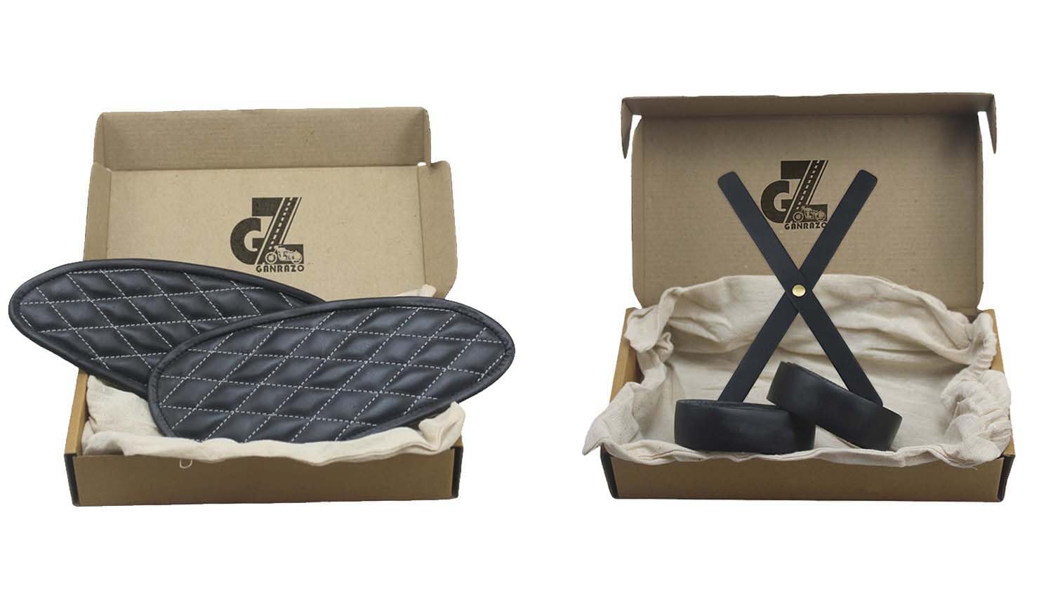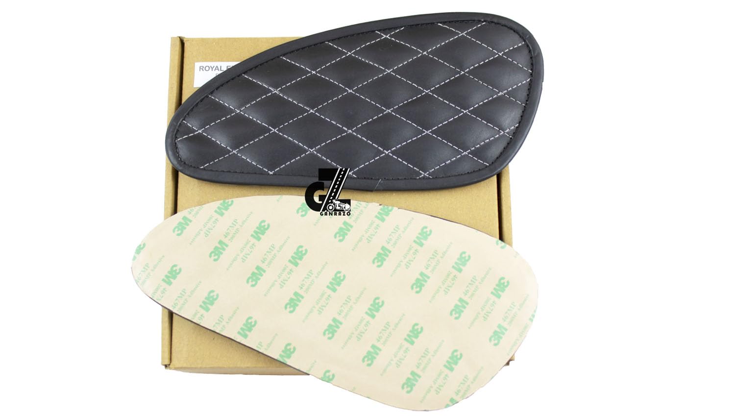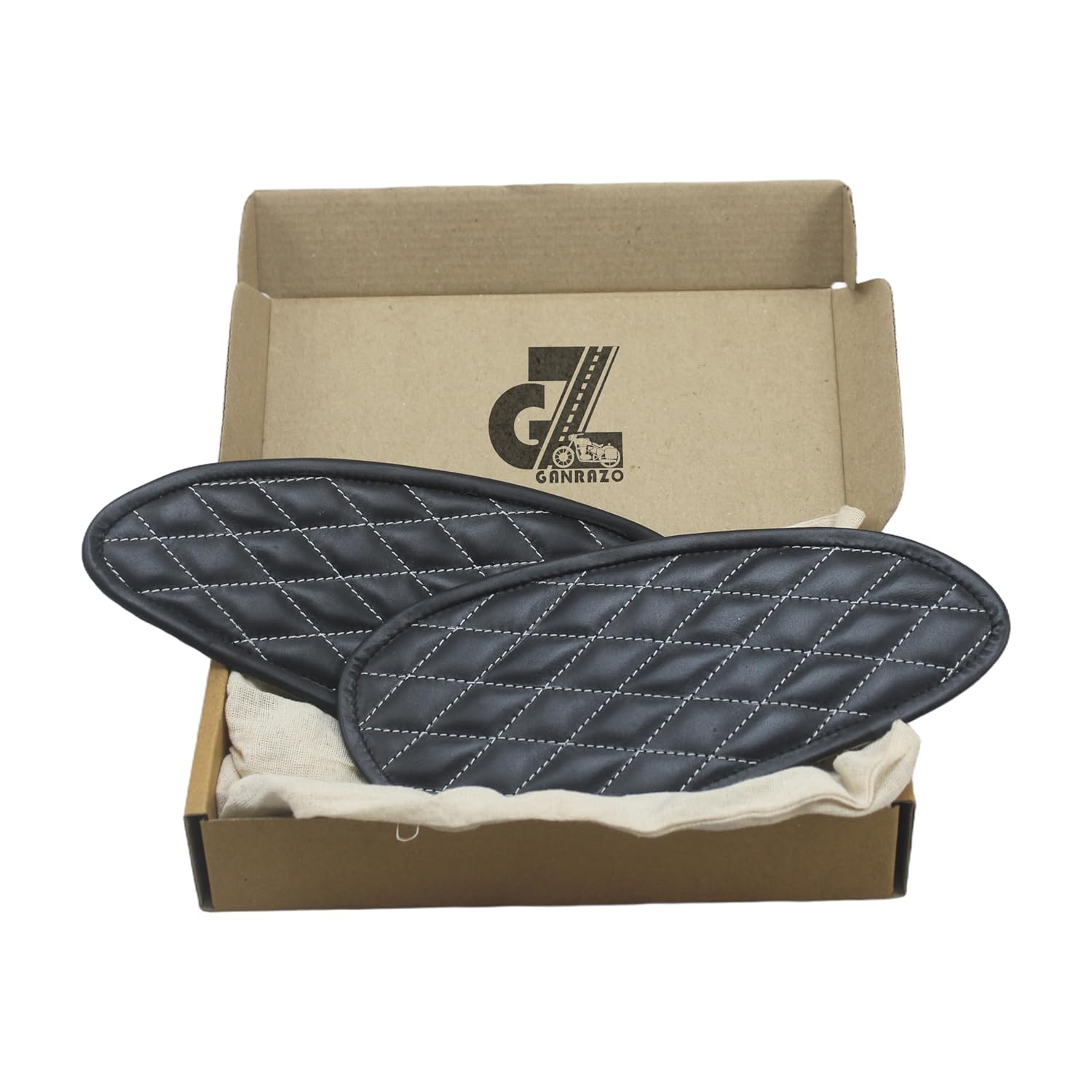Genuine Leather Daimond Black Tank Pad with White Thread Combo Headlight X & Handgrip Straps Compatible with Royal Enfield Interceptor 650