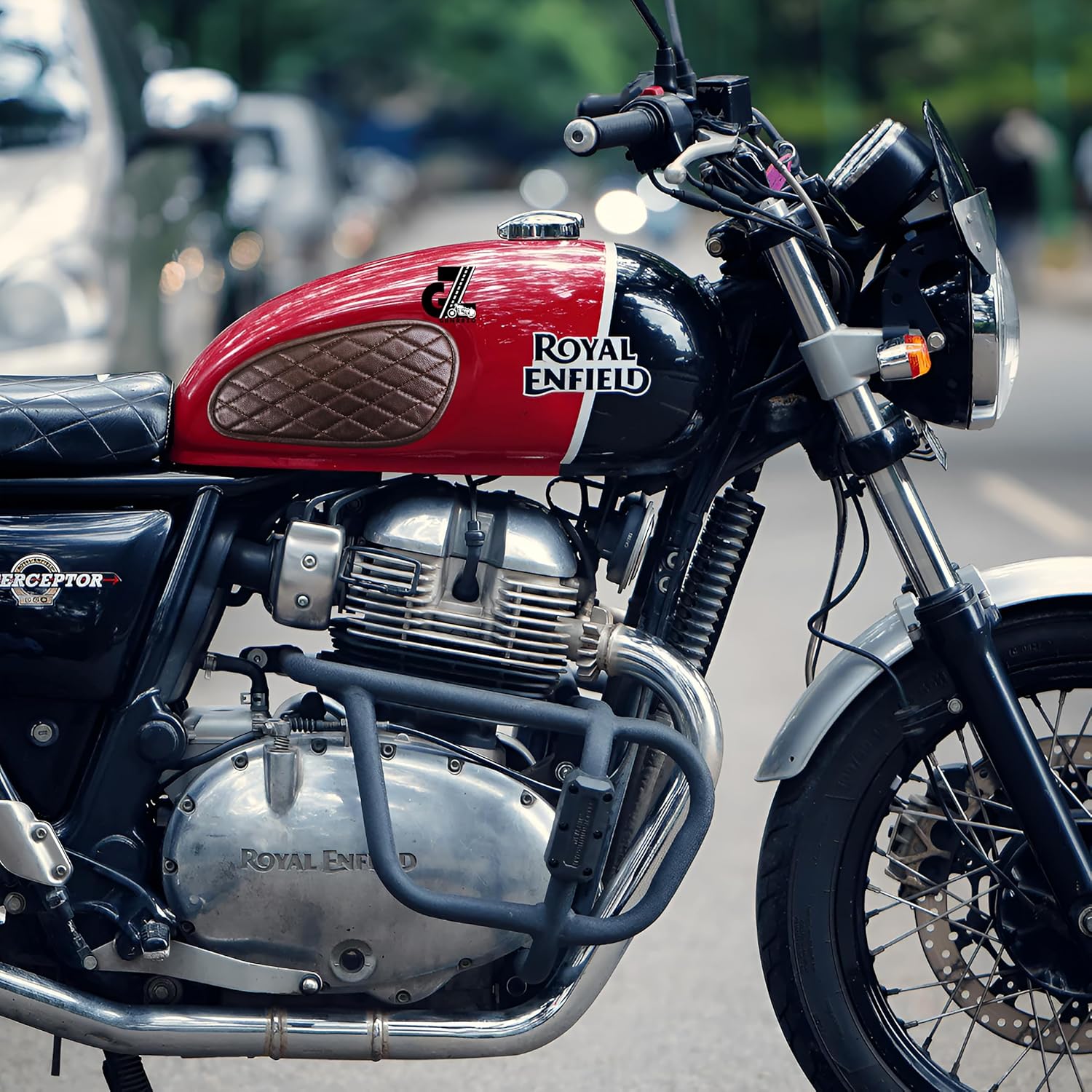 Genuine Leather Daimond Dark Brown Tank Pads with Brown Thread Headlight X Perforated & Handgrip Straps Compatible with Royal Enfield Interceptor 650