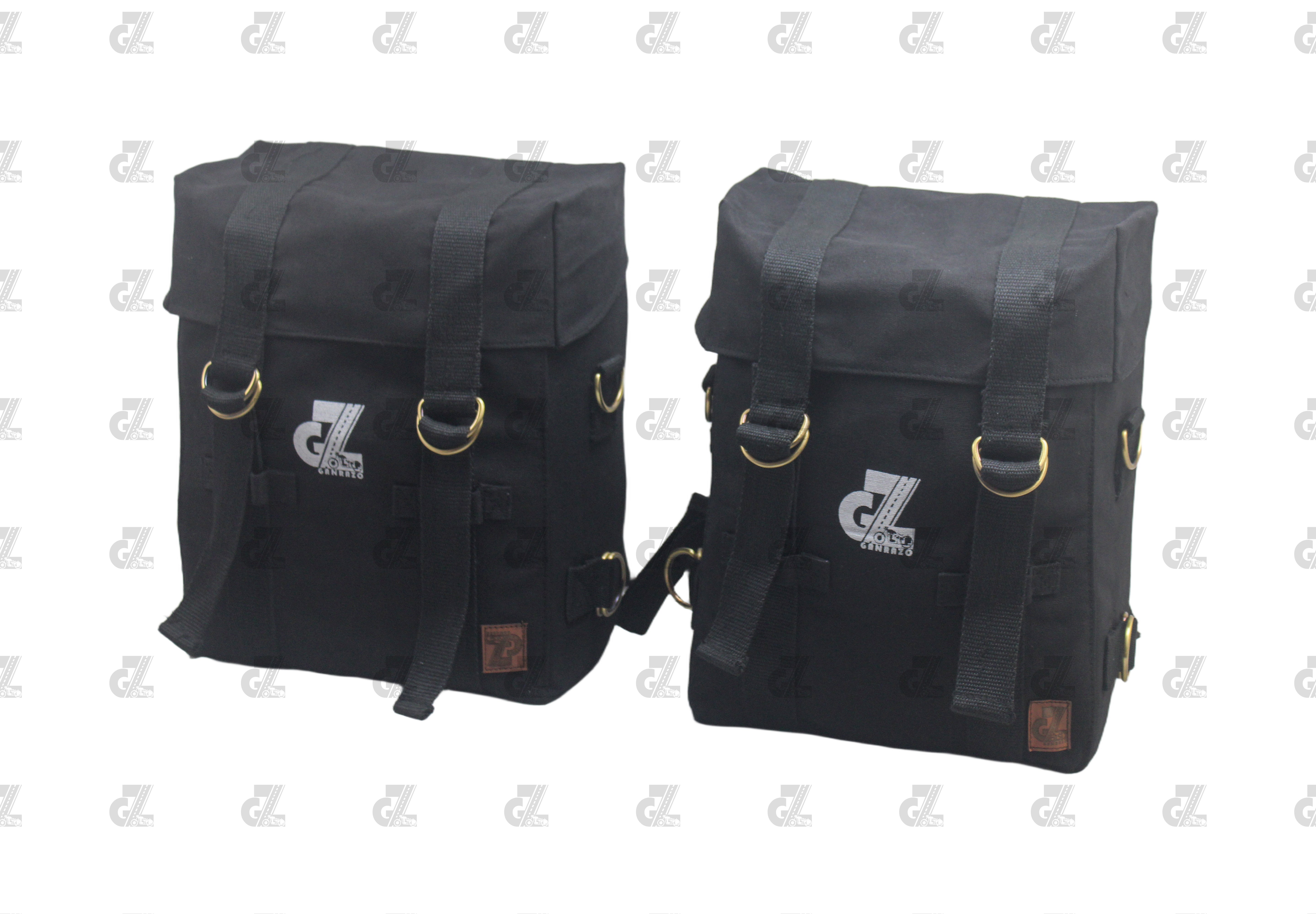 Black Canvas Pannier Bag Pair With Saddle Stay Pair Fit for Royal Enfield Super Meteor 650