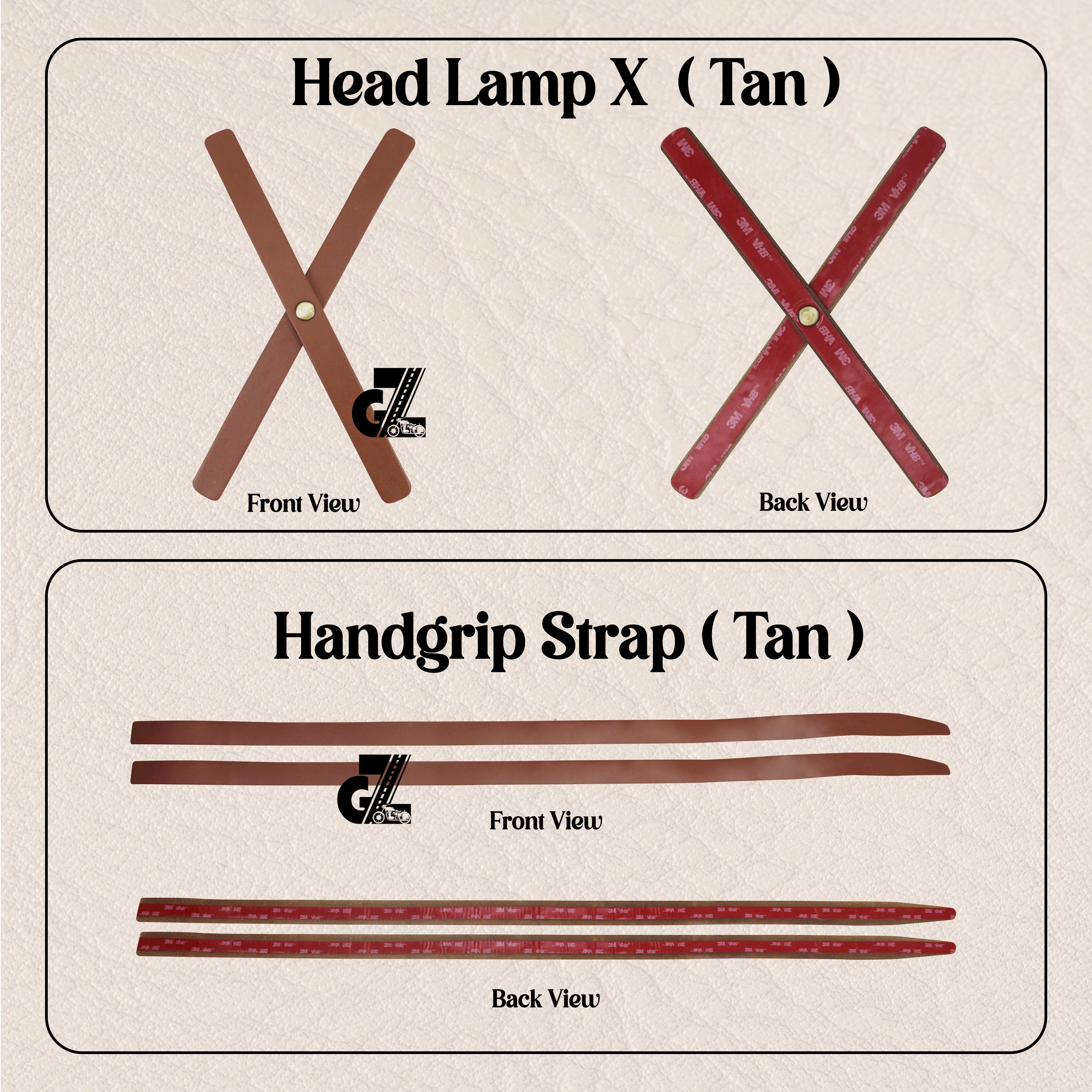 Tan Genuine Leather Sticker Head Lamp X With Handgrip Straps Pair Compatible With Royal Enfield Super Meteor,Continental Gt,Interceptor,Classic 650, Bear 650