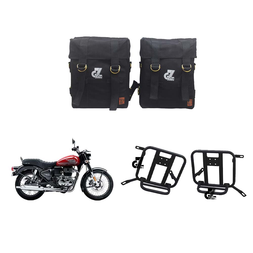 Black Canvas Pannier Bag Pair With Saddle Stay Pair Fit for Royal Enfield New Bullet 350