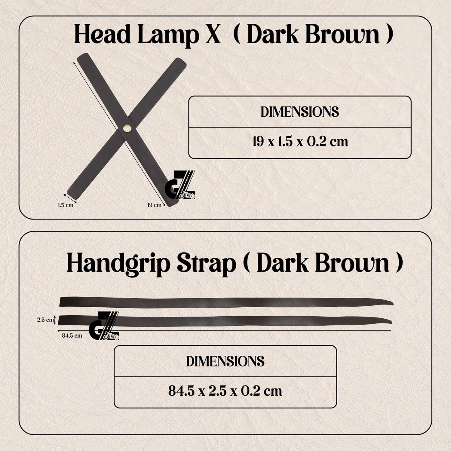 Genuine Leather Black Tank Pads Combo Headlight X & Handgrip Straps Dark Brown Compatible with Royal Enfield Bear 650