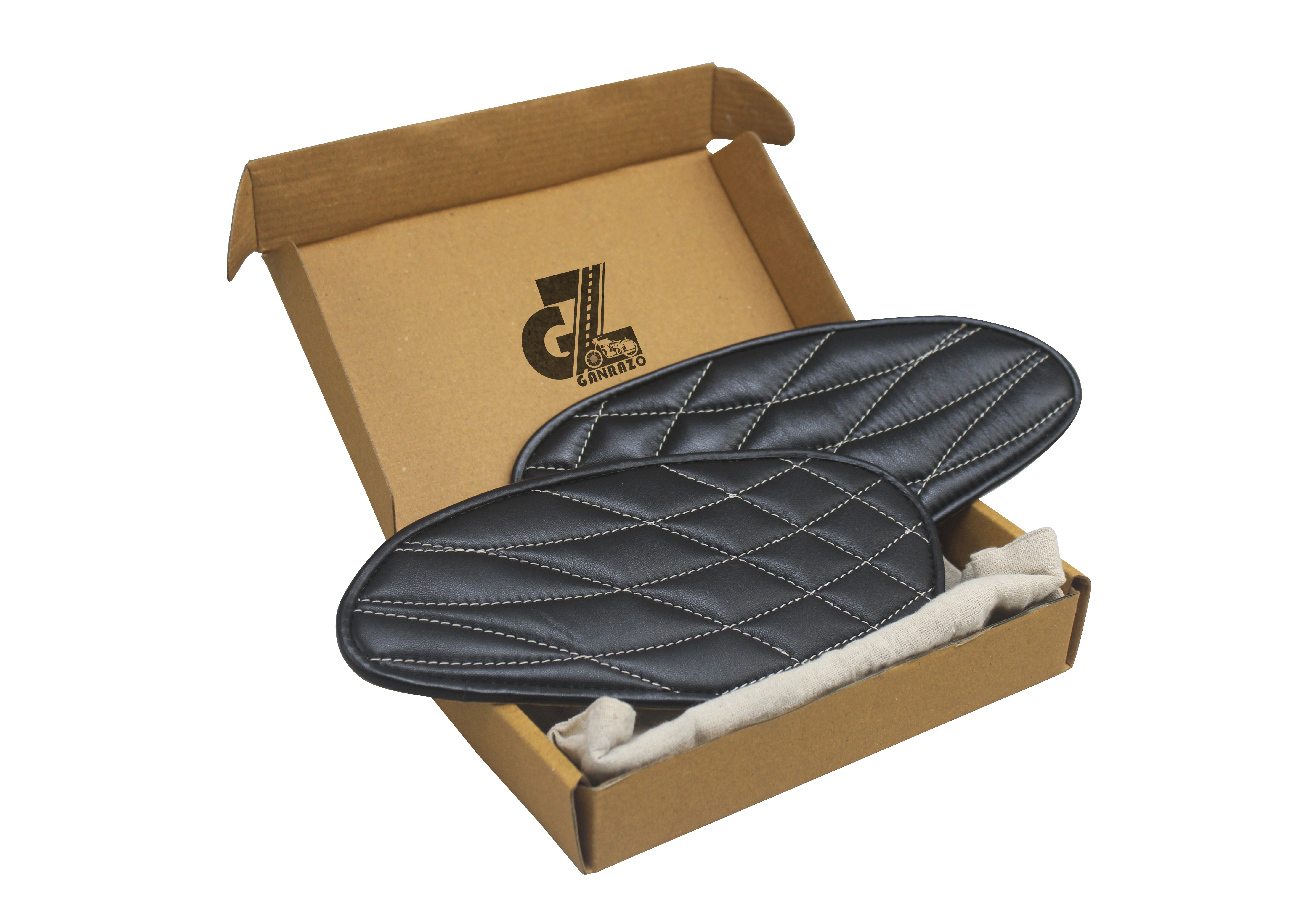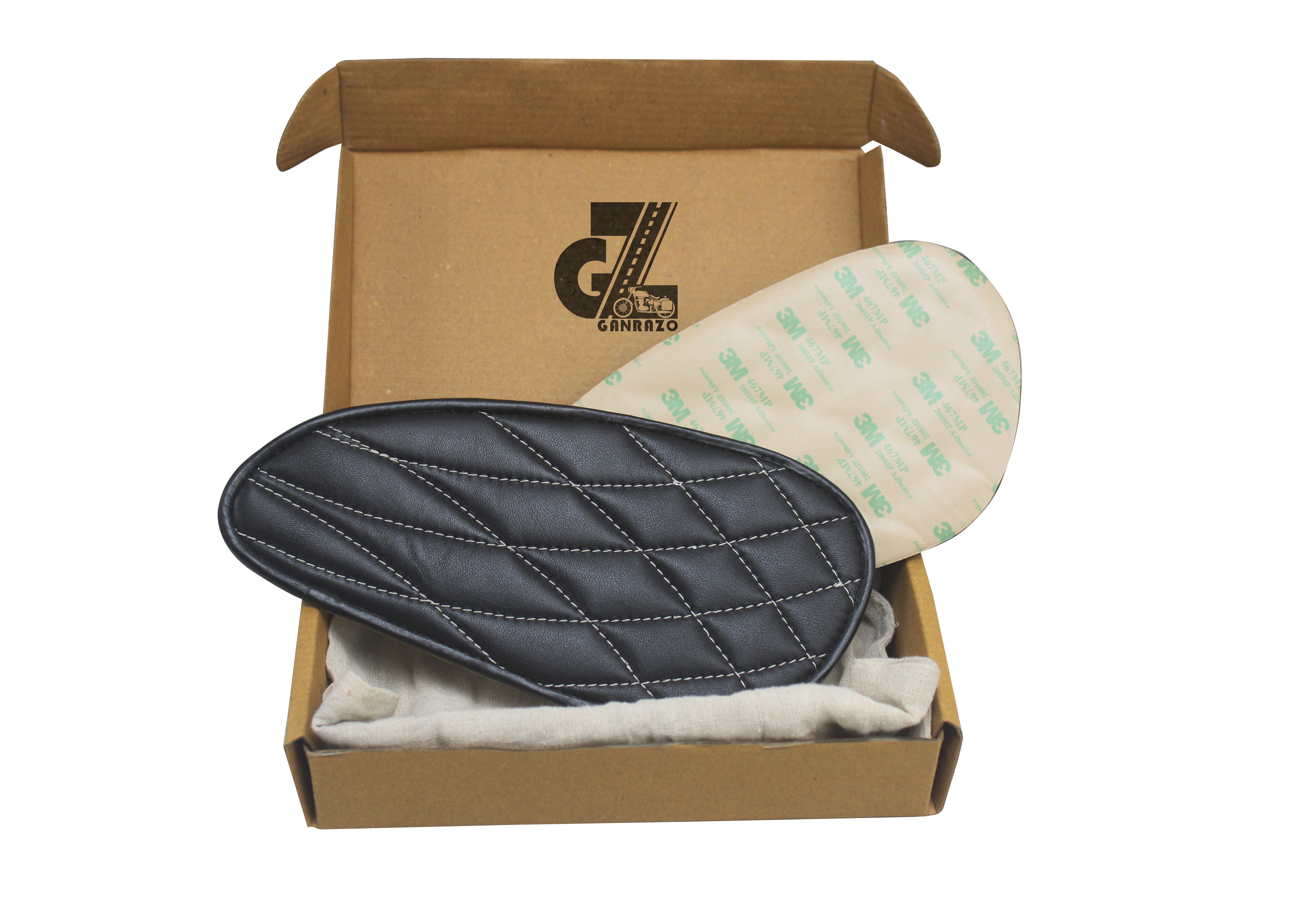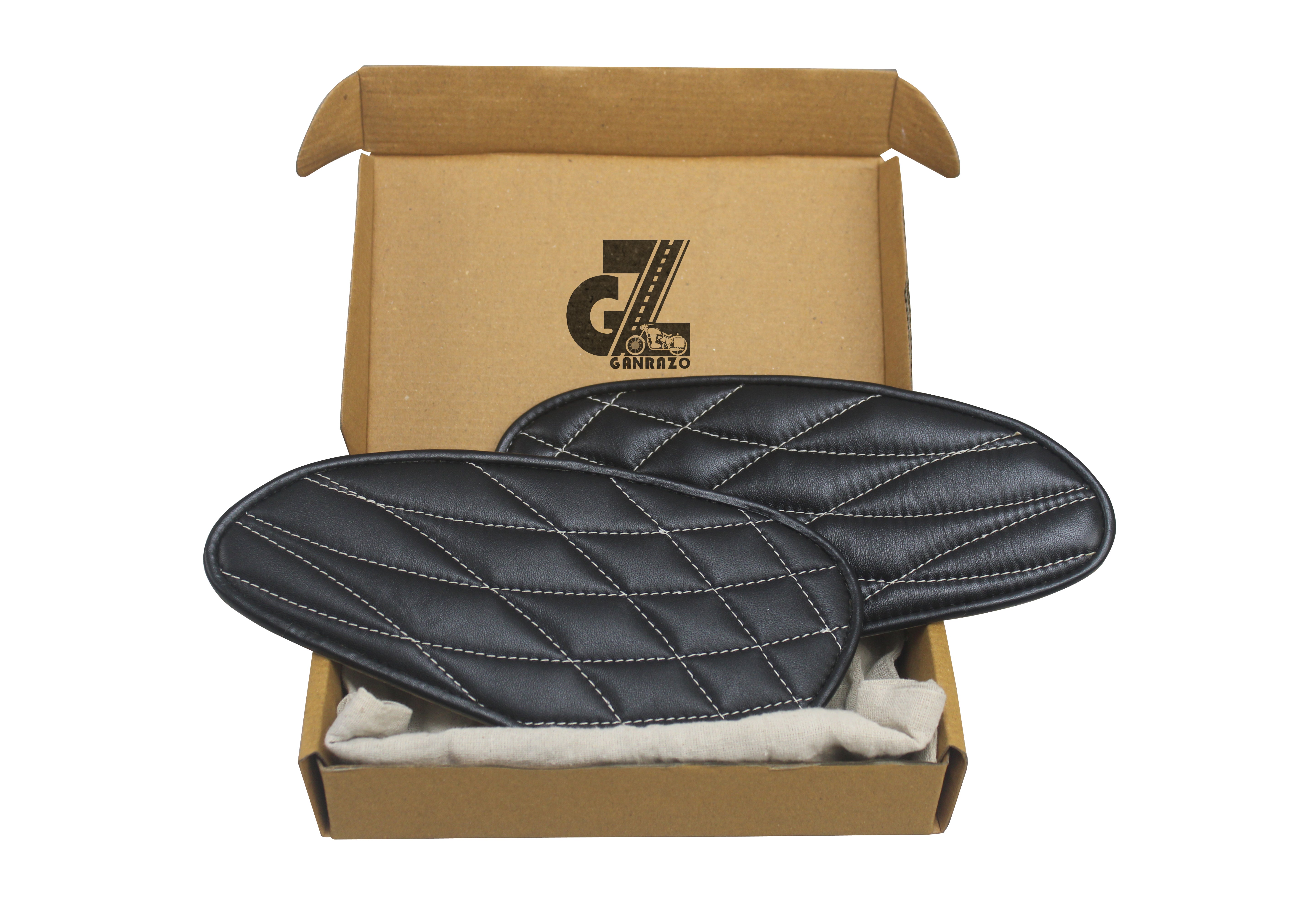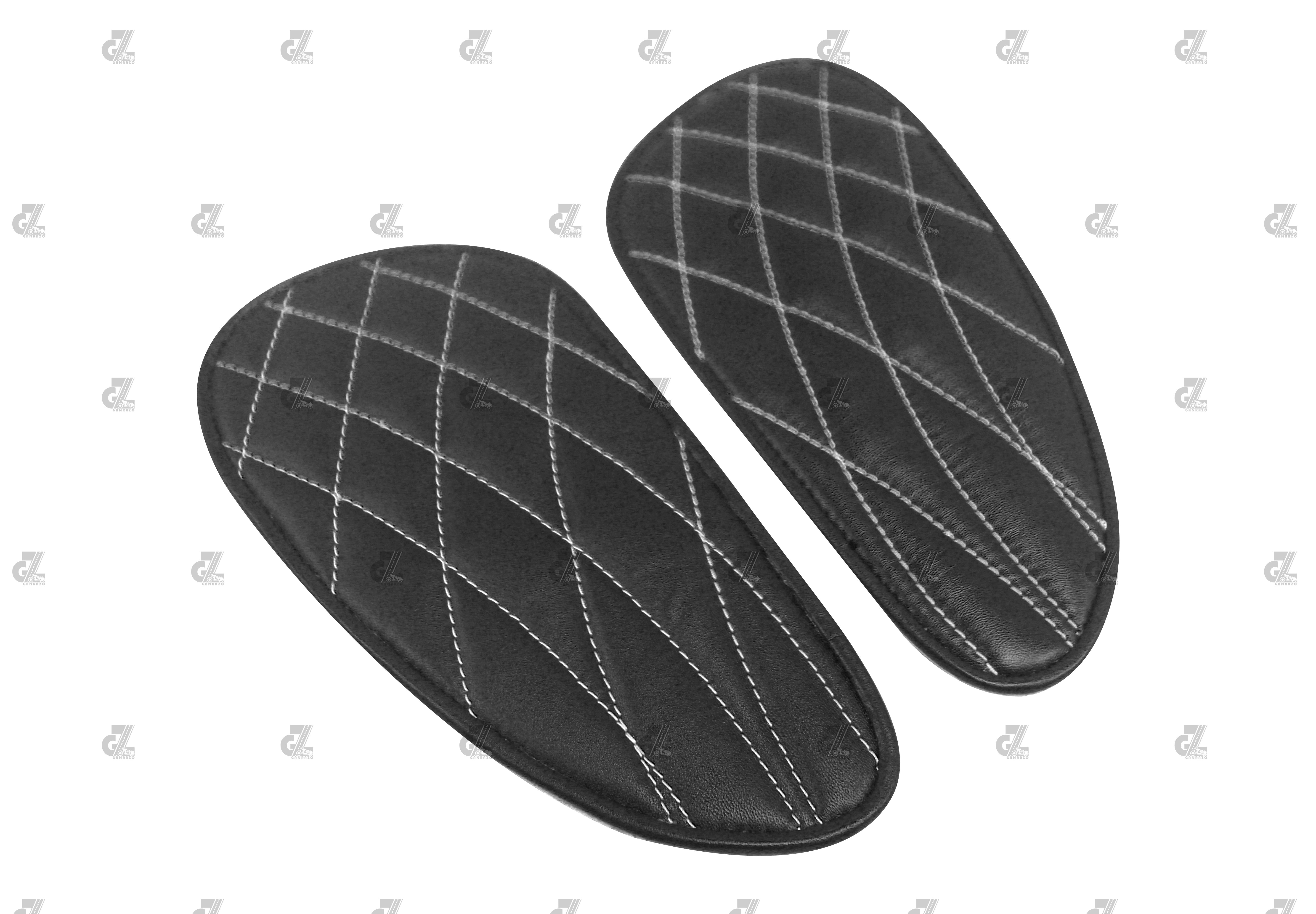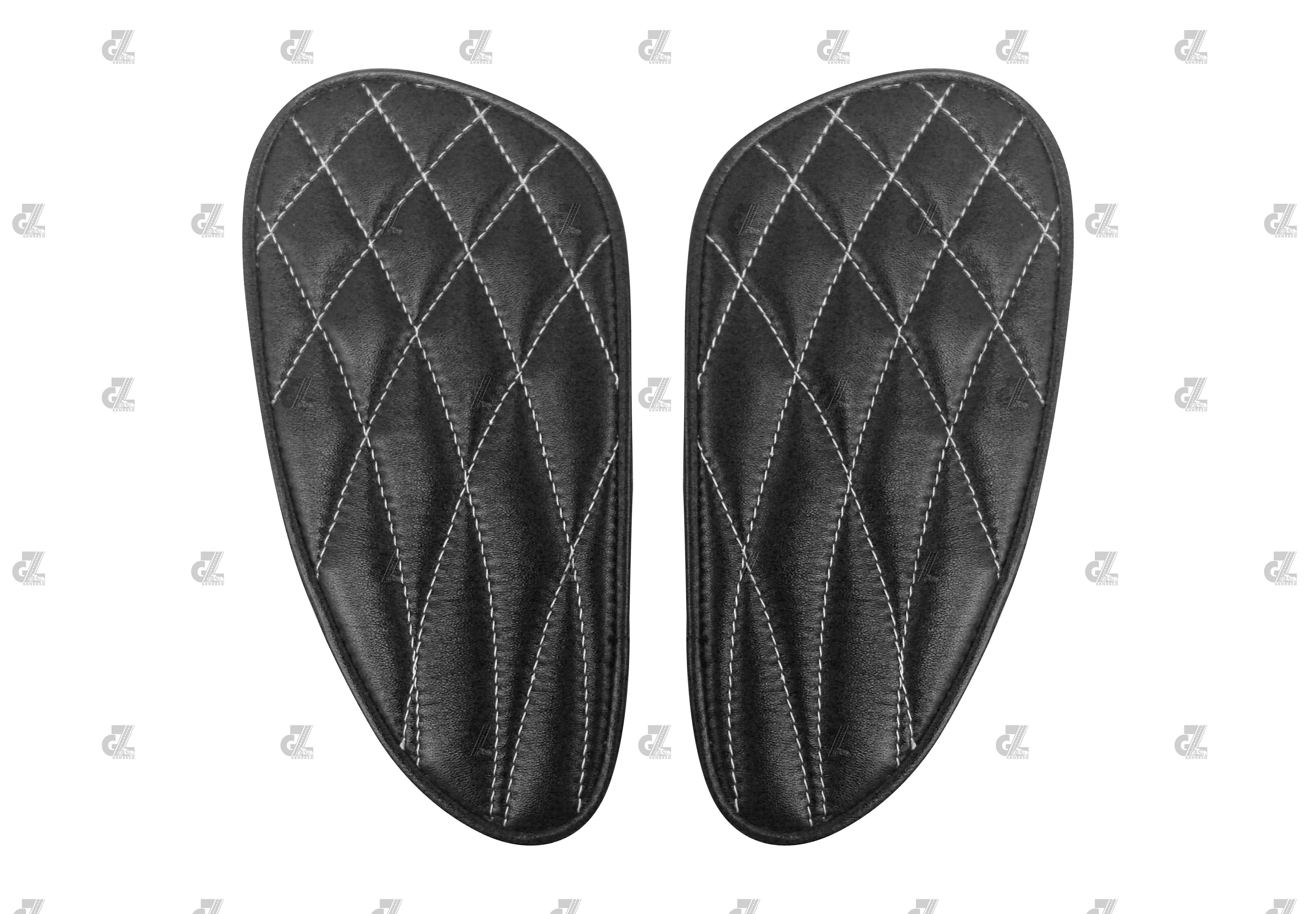 Genuine Leather Curve Diamond Tank Pads/Knee Pads/Tank Grip Thai Pads with White Thread Compatible with Royal Enfield Bear 650