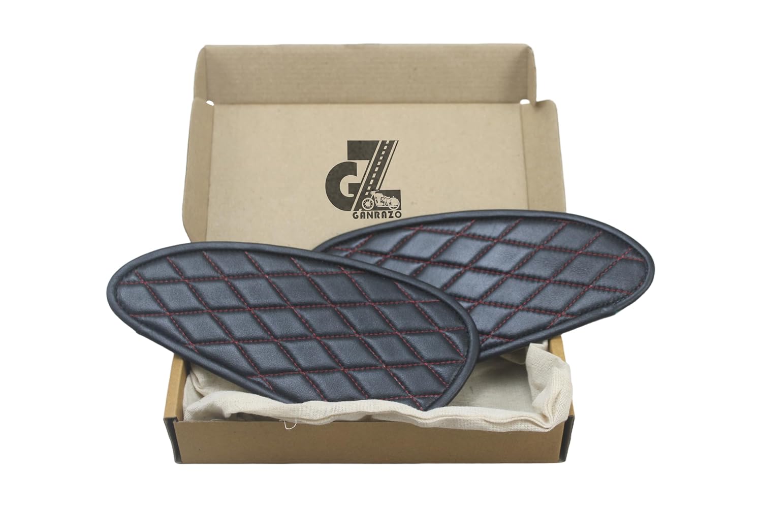 Genuine Leather Diamond Black Tank Pad with Red Thread Combo Handgrip Straps Pair Compatible with Royal Enfield Interceptor 650