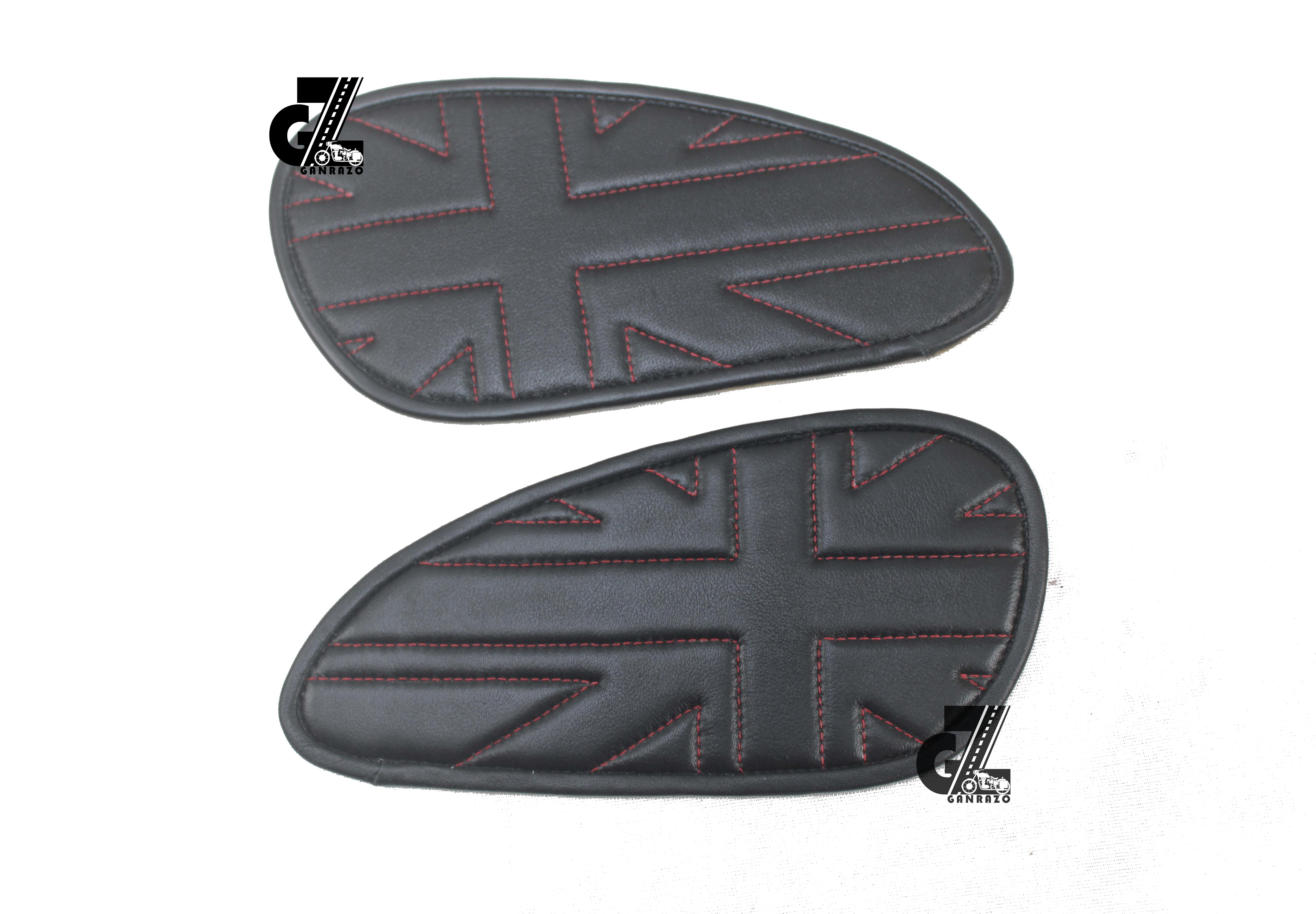 Genuine Leather Union Jack Black Tank Pad with Red Thread Compatible with Royal Enfield Bear 650